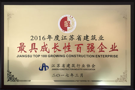 2016 年度江蘇省建筑業(yè)最具成長(zhǎng)性百強(qiáng)企業(yè)