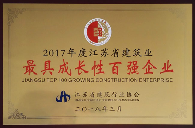 2017年度江蘇省建筑業(yè)最具成長(zhǎng)性百強(qiáng)企業(yè)