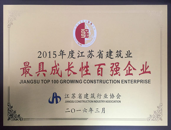 2015 年度江蘇省建筑業(yè)最具成長(zhǎng)性百強(qiáng)企業(yè)