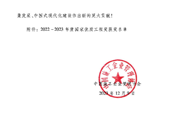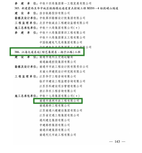 近日,中國(guó)施工企業(yè)管理協(xié)會(huì)發(fā)布2022-2023年國(guó)家優(yōu)質(zhì)工程獎(jiǎng)名單,我公司參建的江海大道東延(綜藝集團(tuán)東-揚(yáng)子江路)工程登榜。